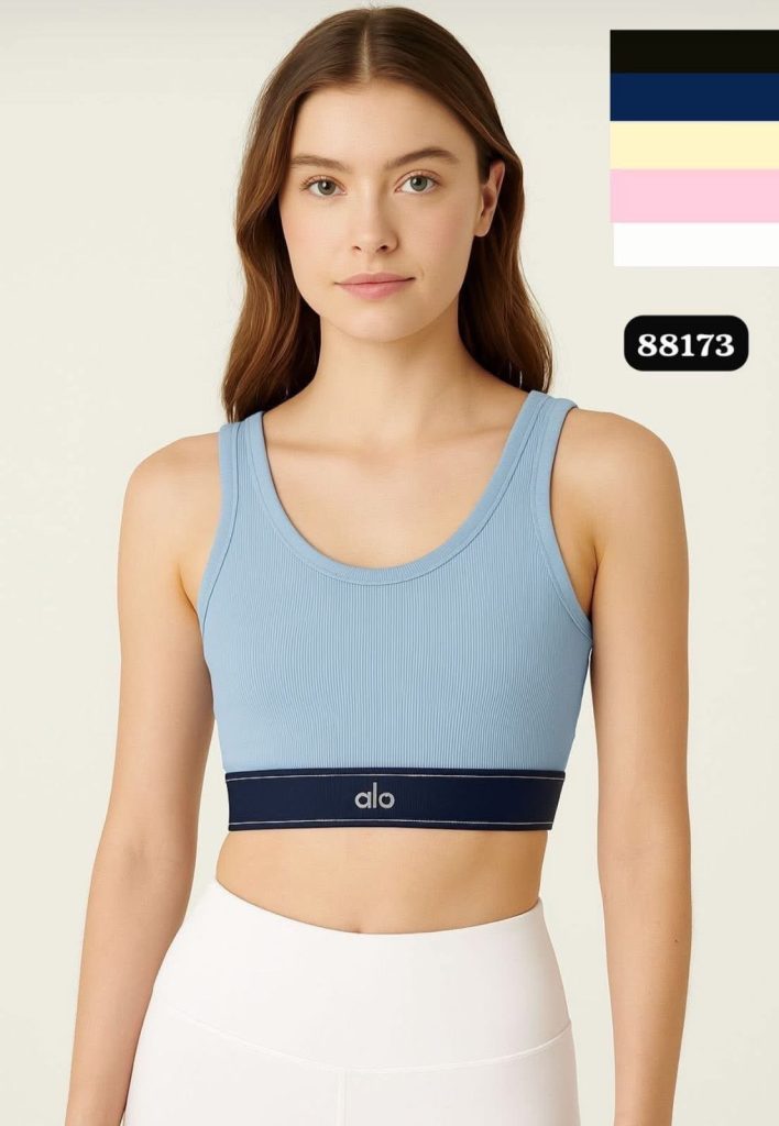 Ropa Deportiva Top Alo Top deportivo ALO disponible en azul marino, amarillo, rosa, negro y blanco, con ajuste cómodo y diseño moderno que brinda soporte y estilo para entrenar o uso diario. Compra ahora $380